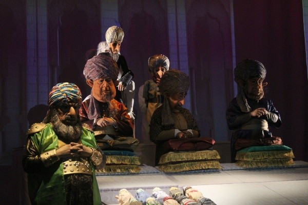 Команда из Екатеринбурга придумала очень необычный путь «превращения» артистов в героев восточной сказки, а пространства зрительного зала и сцены – в волшебный мир. Без современных технологий здесь не обошлось, но самое необычное в спектакле – это маски. Глаз оторвать от этих произведений искусства невозможно – настолько это уникальная работа. Актеров под ними не видно, но образы получаются живыми, кажется, что герои даже могут улыбаться или гневаться. Добавьте к этому еще тонкий восточный юмор, «переливающуюся» красивыми звуками музыку и получите представление о новой постановке. Но лучше один раз все-таки увидеть, чем несколько раз прочитать. «Калиф-аист» этого достоин!