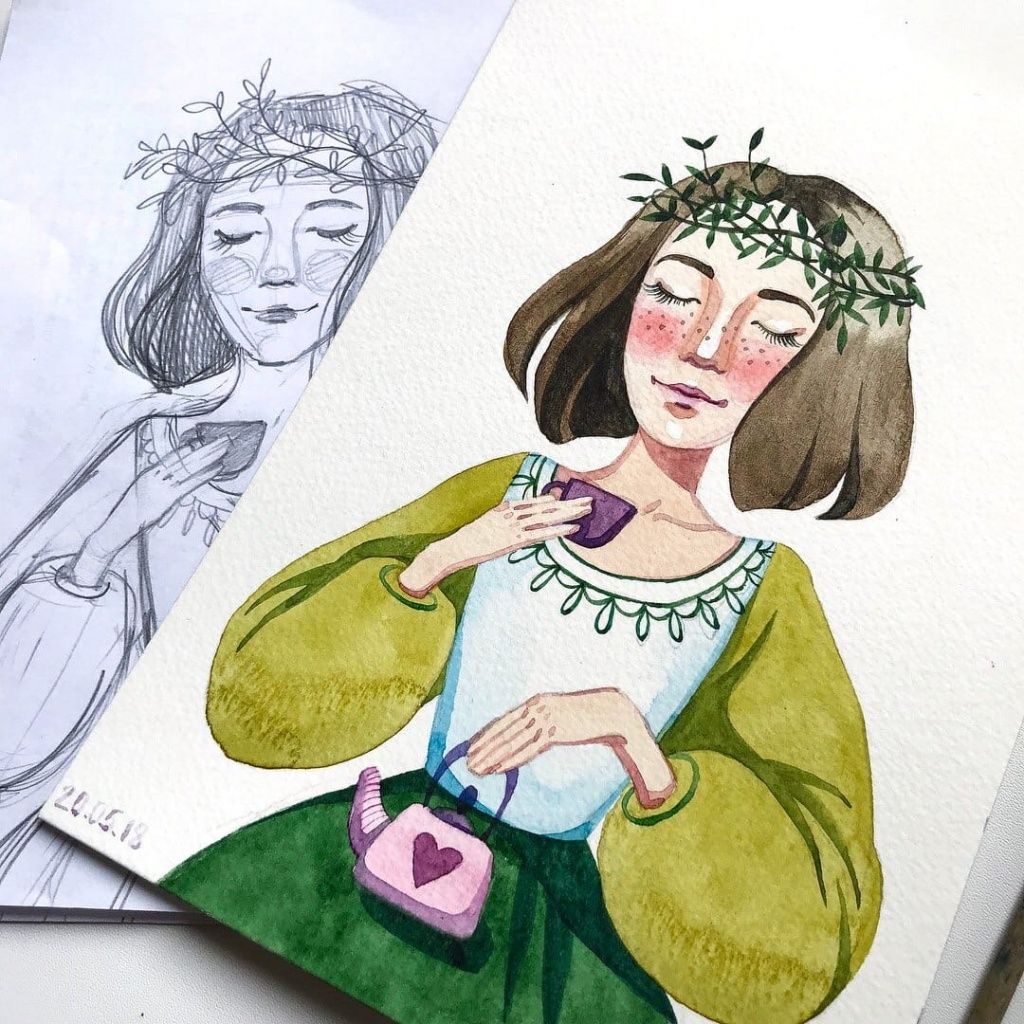 С работами художницы Юлии Гориновой многие знакомы по ее Instagram. Нежные скетчи, милые портреты, пародии на картины мировых мастеров, даже роспись по стенам и изящные мехенди на руках ‒ все это под силу хрупкой талантливой девушке из Куженера.