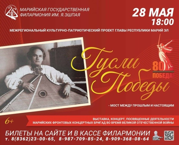 28 мая в 18:00 в Марийской филармонии имени Якова Эшпая пройдет концерт проекта «Гусли Победы», посвящённого памяти фронтовой бригады Павла Тойдемара.