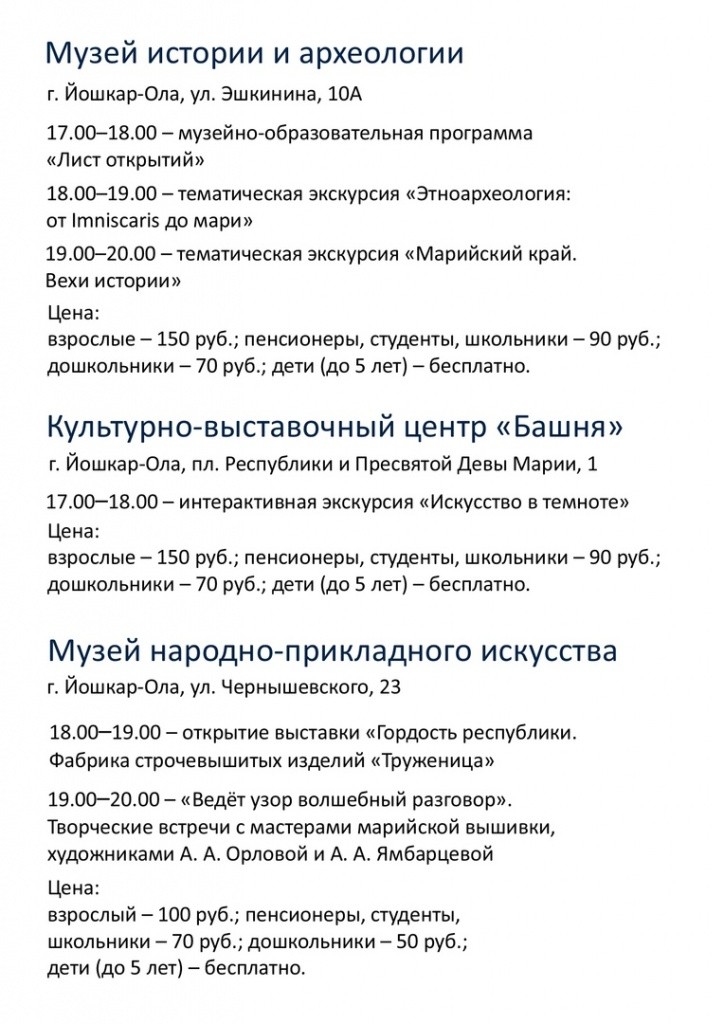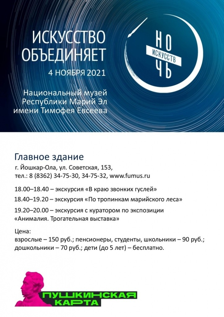 Кстати, к ежегодной культурной акции «Ночь искусств»присодинится и Республиканский музей изобразительных искусств в Йошкар-Оле. Посетители могут посетить выставки, мастер-классы, поучаствовать в квизе и интерактивной программе.