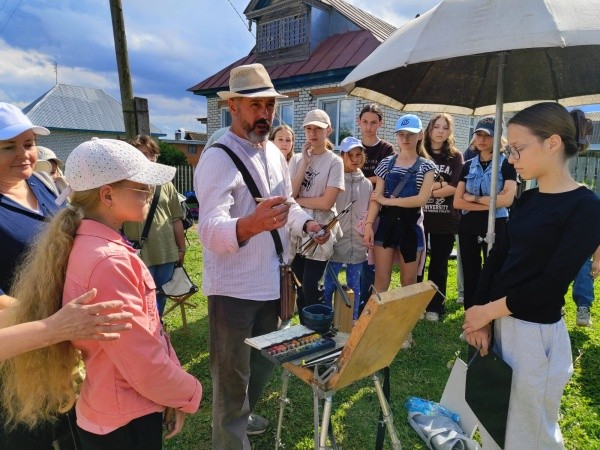 И, конечно, стимул к росту юным акварелистам дает пленэр, который второй раз с 23 по 29 июня прошел в «намоленном художниками месте» – в Козьмодемьянске. Здесь есть все: замечательные просторы с холмами, лесами, полями, вид на вдохновляющую матушку-Волгу, деревенские и старинные городские здания. В полном распоряжении детей весь Культурно-исторический музейный комплекс, так что обогатили их знания и экспозиции в музеях. В один дружный коллектив собрали 62 школьника из различных учебных заведений – Национальной гимназии искусств колледжа культуры и искусств имени И.С. Палантая, ДШИ Йошкар-Олы № 1, № 4 и № 7, «Лира» при Лицее Бауманском, школы-интерната города Козьмодемьянска «Дарование» (кстати, пленэристы жили в общежитии этого интерната), а также из разных детских художественных школ Волжска, Звенигова и поселков. Самому юному участнику пленэра было 11 лет, самому старшему – 17. Обучали ребят искусству акварели 18 опытных художников, преподавателей художественных школ. Незабываемы были мастер-классы самого Сергея Алдушкина.