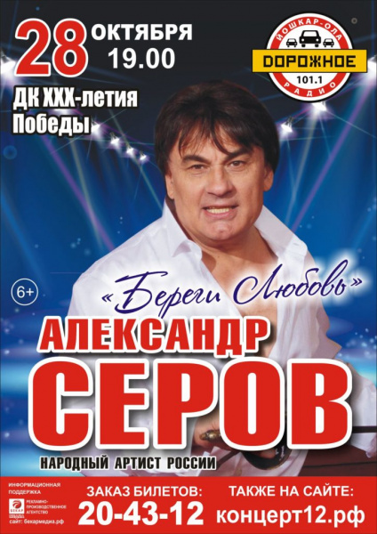Народный артист России Александр Серов приезжает в Йошкар-Олу, чтобы дать единственный концерт, который состоится в ДК им. ХХХ-летия Победы 28 октября. Не упустите уникальную возможность услышать любимые хиты в живом исполнении.