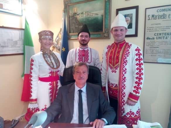 Первый день фестиваля был посвящен празднованию нашего государственного праздника – Дня России. Сегодня артисты широко известного ансамбля «Марий Эл» выступили на приеме у мэра города Санта Маринелла Пиетро Тидей, очаровав и влюбив своим творчеством присутствующих.