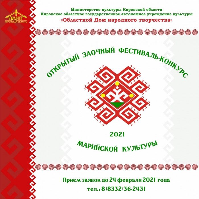 Организаторами мероприятия стал Дом народного творчества Кировской области. Открытый Областной заочный фестиваль-конкурс марийской культуры соберет творческие коллективы и индивидуальных исполнителей самодеятельного творчества домов и дворцов культуры, представителей национально-культурных объединений и диаспор Кировской области и соседних регионов. Тех, кто хочет продемонстрировать удивительную культуру народа мари через марийские национальные песни, танцы и фольклор.