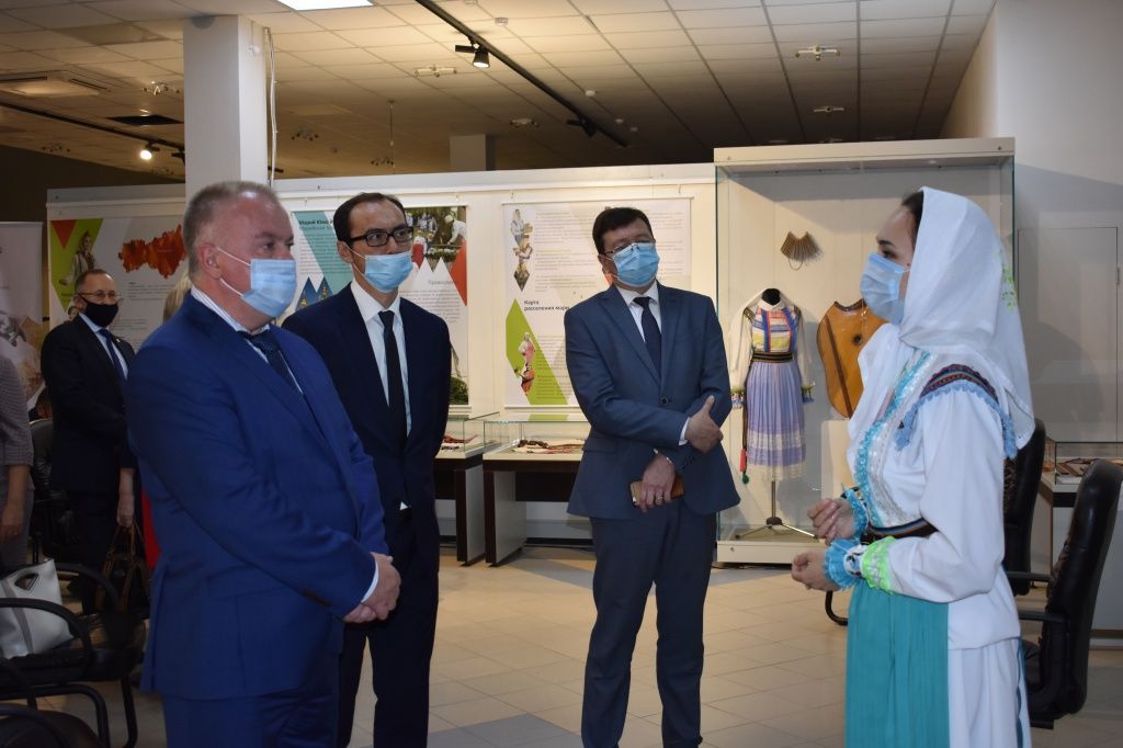 Директор Дома народов России осмотрел выставку, посвященную народу мари, в Музее истории и археологии Марий Эл а об экспонатах и национальном достоянии традиционной культуры ему рассказала экскурсовод Надежда Васканова. О недавних мероприятиях, проведенных благодаря выигранному гранту Федерального агентства по делам национальностей сообщила председатель Федеральной национально-культурной автономии марийцев России Лариса Яковлева. Она напомнила, каким потрясающим по своей энергетике вышел Межнациональный форум «Территория согласия» с участием разных народов, проживающих в Марий Эл.