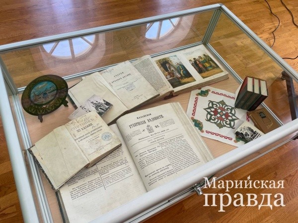 На одной из витрин можно встретить коллекцию книг XIX века, связанных с Казанью: подшивка газеты «Казанские губернские Ведомости» 1848 года, иллюстрированный указатель достопримечательностей столицы Татарстана «Спутник по Казани», изданный в 1895 году, известный исторический труд служителя церкви при Казанском кремле Платона Заринского «Очерки Древней Казани» 1877 года.