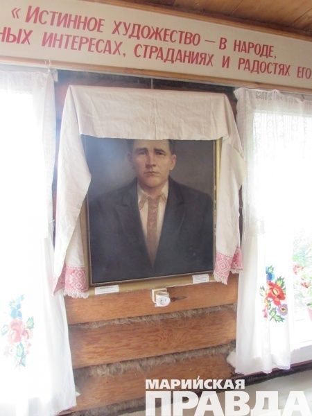 Со стены середины комнаты на посетителей музея драматург глядит с большого портрета. Вообще замечу, картин собрано здесь очень много. Есть даже рукописные портреты, сложно представить сколько им лет. В углу одной из комнат висит настоящая одежда мари, стоит старинная посуда, деревянные подсвечники, печатные машинки, чугунные утюги и швейная машина. Есть отдельный стенд, посвященный семье Шкетана. Стоит необычный стул, дизайн которого не навряд ли смогли бы придумать нынешние мастера. Кстати, мебели вообще сохранилась до сих пор немало: стол из прочного дерева, два стула, колыбелька, которая висит в коридоре.