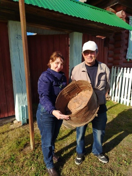Поездка выдалась удачной. Жители деревни передали музею старинную сеялку, металлическую коробку от казанской кондитерской фабрики И.С. Одинцова, в которой когда-то хранились сладости, а также изящный графин с крышкой-рюмкой.
