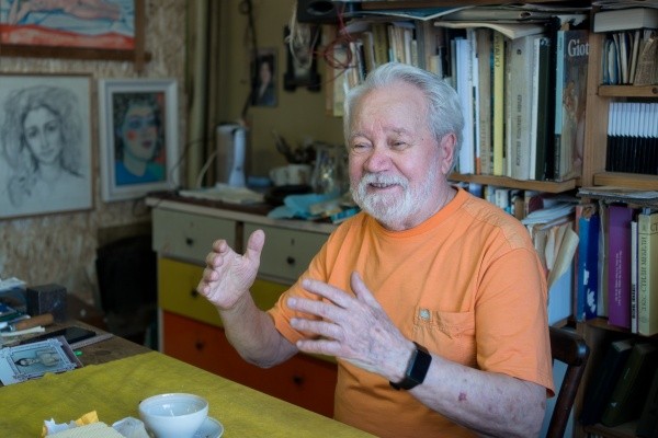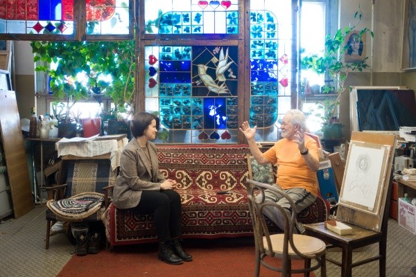 В мастерской на 17-м этаже художник уже не так часто принимает гостей и в силу возраста редко работает с детьми. А раньше учил ребят, которые сами были как чистый лист, не владели техникой рисунка.