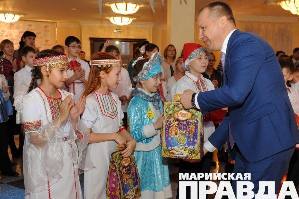 - Очень приятно видеть вас, ребятишки, такими красивыми, нарядными, в национальных костюмах. Вы хорошо учились, вы хорошо трудились, вы проявили себя в этом году настоящими героями и Александр Александрович Евстифеев, Глава Республики передает для вас отдельное поздравление! Все руководство республики, все взрослые жители Марий Эл желают, чтобы в новом году вы были здоровыми, смелыми, сильными и новые успехи сопровождали вас каждый день, на каждом этапе вашего движения по жизни, - обратился к мальчишкам и девчонкам Сергей Сметанин.