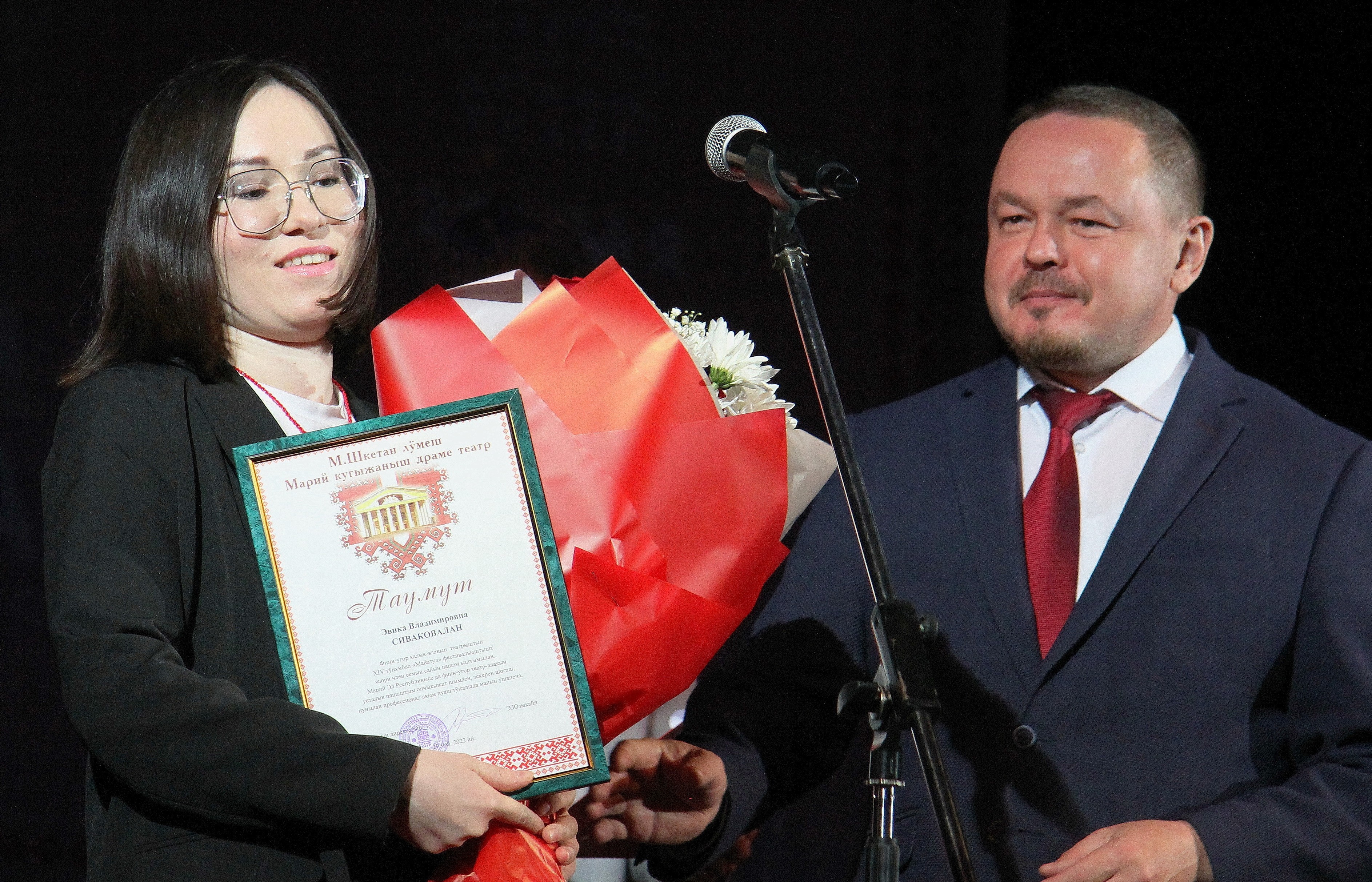 На торжественной церемонии закрытия были названы победители в девяти основных номинациях. Очень приятно, что в трех из них лучшими стали театральные коллективы Марий Эл. Так, «Спецприз» фестиваля вручили артистке Галине Соловьевой за роль Максима в спектакле «Песня дикой пчелки» Марийского ТЮЗа, а диплом в номинации «Лучшая мужская роль» получил заслуженный артист МАССР Юрий Алексеев за роль Аптыкая в том же спектакле.