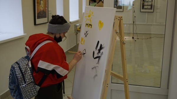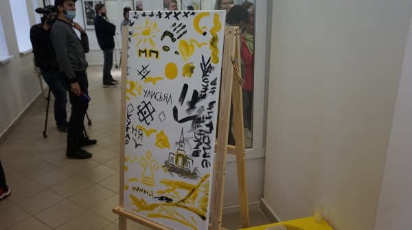 Каждый пришедший в тот вечер в «Башню» получил шанс не только стать частью мероприятия, но и оставить свой след в ее истории. Белоснежное полотно благодаря усилиям гостей и стоящим рядом с ним трем баночкам краски – белой, черной и желтой – недолго оставалось таким. Вокруг нетронутого холста быстро собрались люди, взяли в руки кисти и начали творить. Созданный коллективными усилиями шедевр, по заверению работников комплекса, будет вывешен на первом этаже.