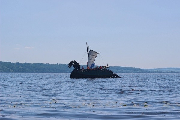 Вчера днем, 22 июня, к причалу в городе Козьмодемьянске пришвартовалось необычное судно – деревянная ладья, построенная в древнерусском стиле. Издалека она похожа на сказочное чудище с тремя головами и хвостом. На борту ладьи - участники Международной научно-исследовательской экспедиции «На Варяжское море. Путь Рюрика».