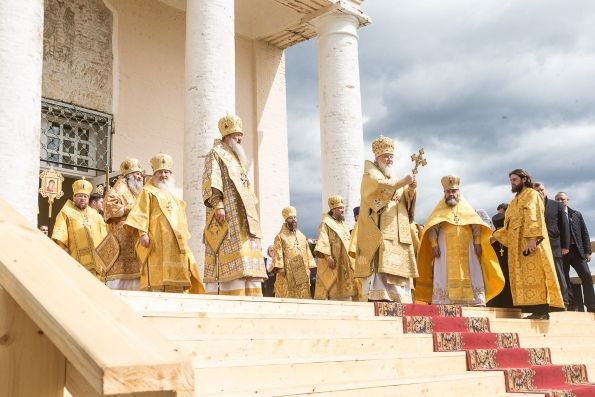 Во вторник, 6 июня, в день празднования явления Великорецкой иконы святителя и чудотворца Николая, архиепископа Мир Ликийских, Предстоятель Русской Православной Церкви в сослужении многочисленного духовенства совершил Божественную литургию и водосвятный молебен на берегу реки Великой, после чего возглавил очередной этап шествия от этого места до Никольского собора села Великорецкого.