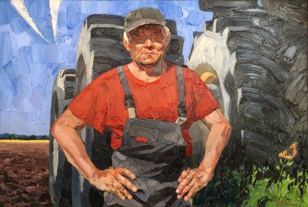 ‒ Я выхожу из машины и мои ноги буквально утопают в земле, ‒ смеется Данила. ‒ Но ходить по ней было приятно, хоть и трудно. В тот момент я понимал, что не могу надолго отвлекать человека от его работы, поэтому упор делал на фотографии, с которых и писал затем картину. Простому русскому мужику сложно позировать в поле, внезапно остановив свой трактор. Из четырех пахарей был выбран Иван Федорович Головин.