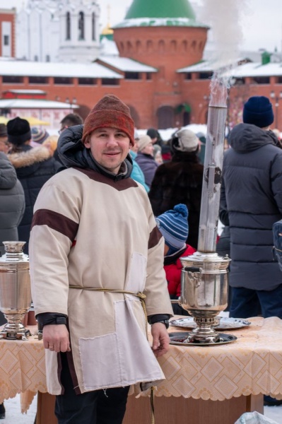 Подкрепиться и отдохнуть после веселых игр можно было у самовара с баранками. Угощения на территории Кремля можно было получить и у коробейников в традиционных русских костюмах.