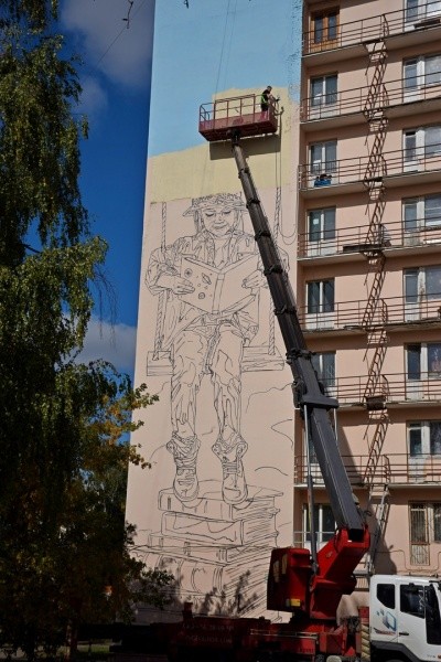Уличный художник Илья Белов начал работу над новым граффити в Йошкар-Оле. Оно появится на здании студенческого общежития в центре марийской столицы, на бульваре Победы.