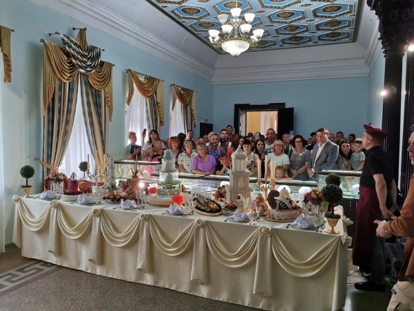 Кстати, на открытии выставки первые посетители могли попробовать кондитерские шедевры Алдиса Бричевса – он угостил их тортом длиной больше 8 метров и весом 42 кг, который украшал шоколадный замок Шереметева.