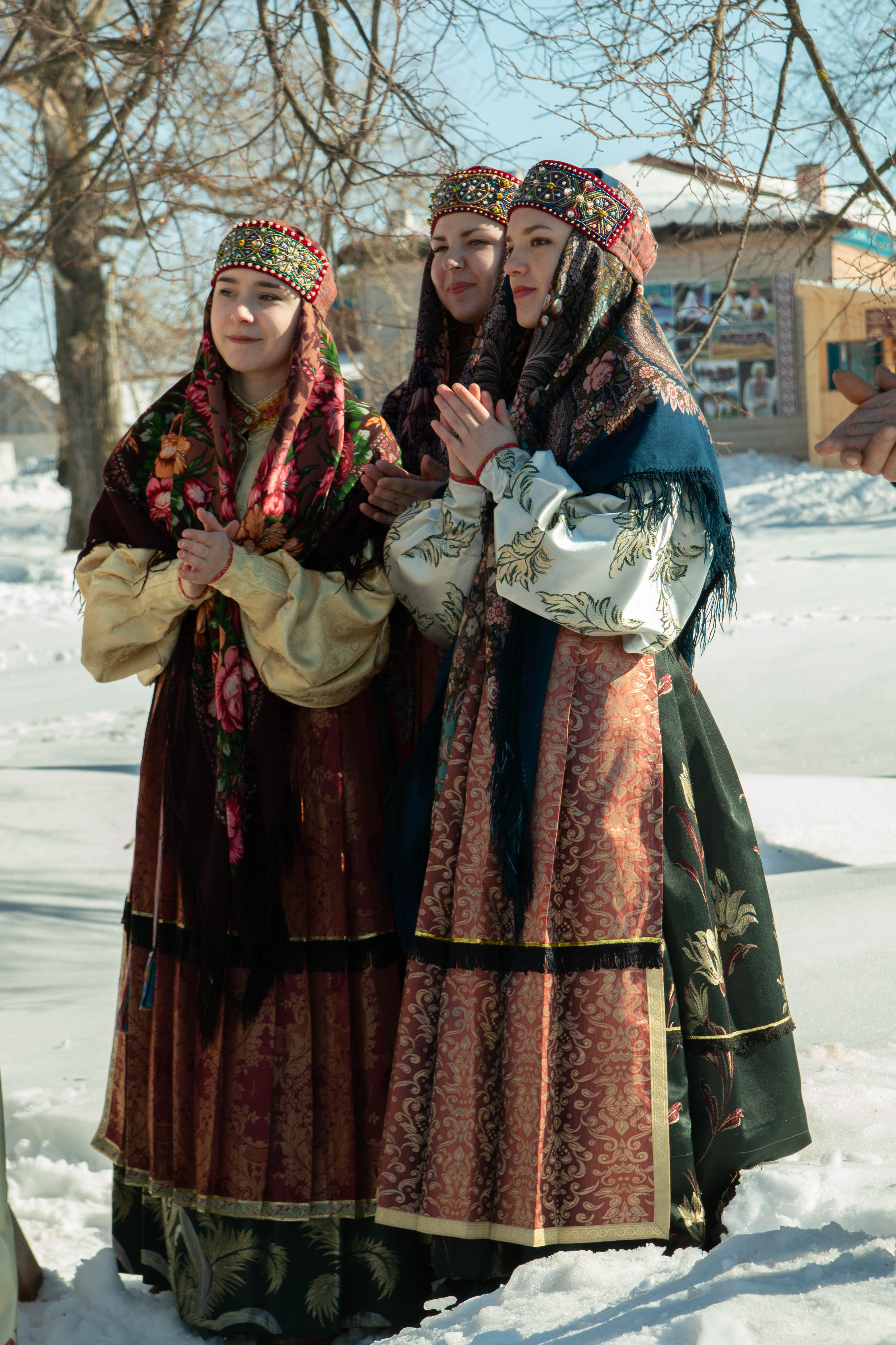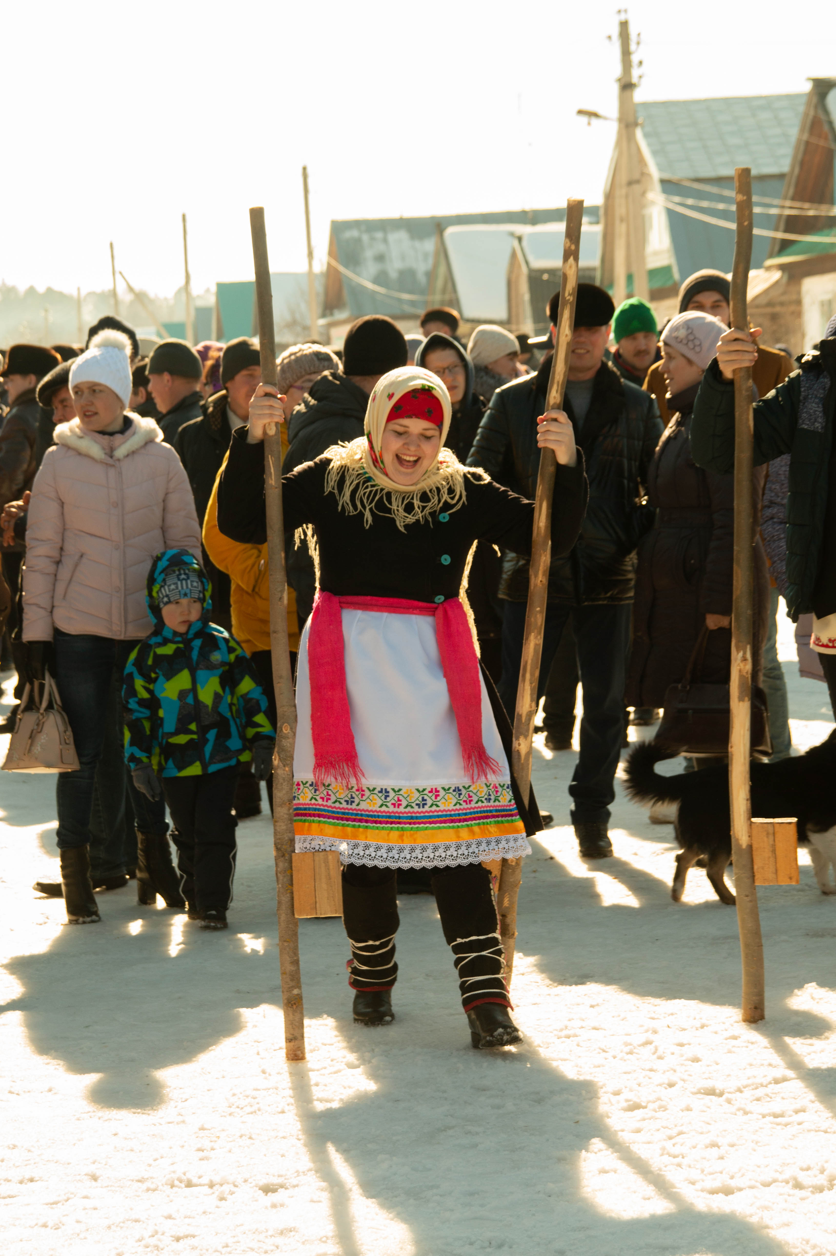 В это время дети и взрослые участвовали в разнообразных играх и конкурсах. То и дело слышались радостные возгласы в духе «Я победил!» и счастливый смех. Те, кто не решался присоединиться к ним, смотрели на театрализованную программу со скоморохами или разглядывали выставку декоративно-прикладного творчества, пробуя масленичные блины, выпечку которых они могли наблюдать прямо на площадке.