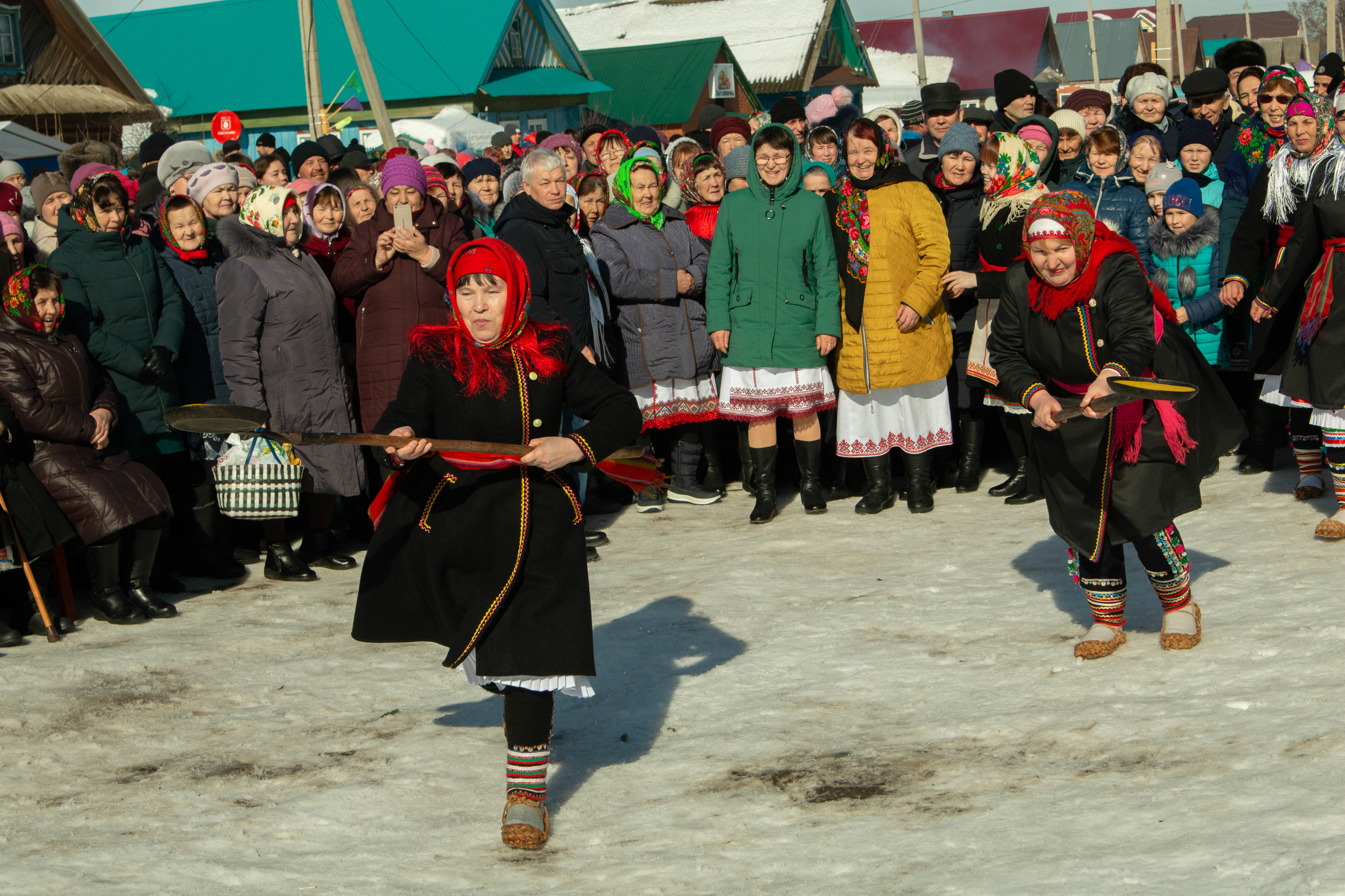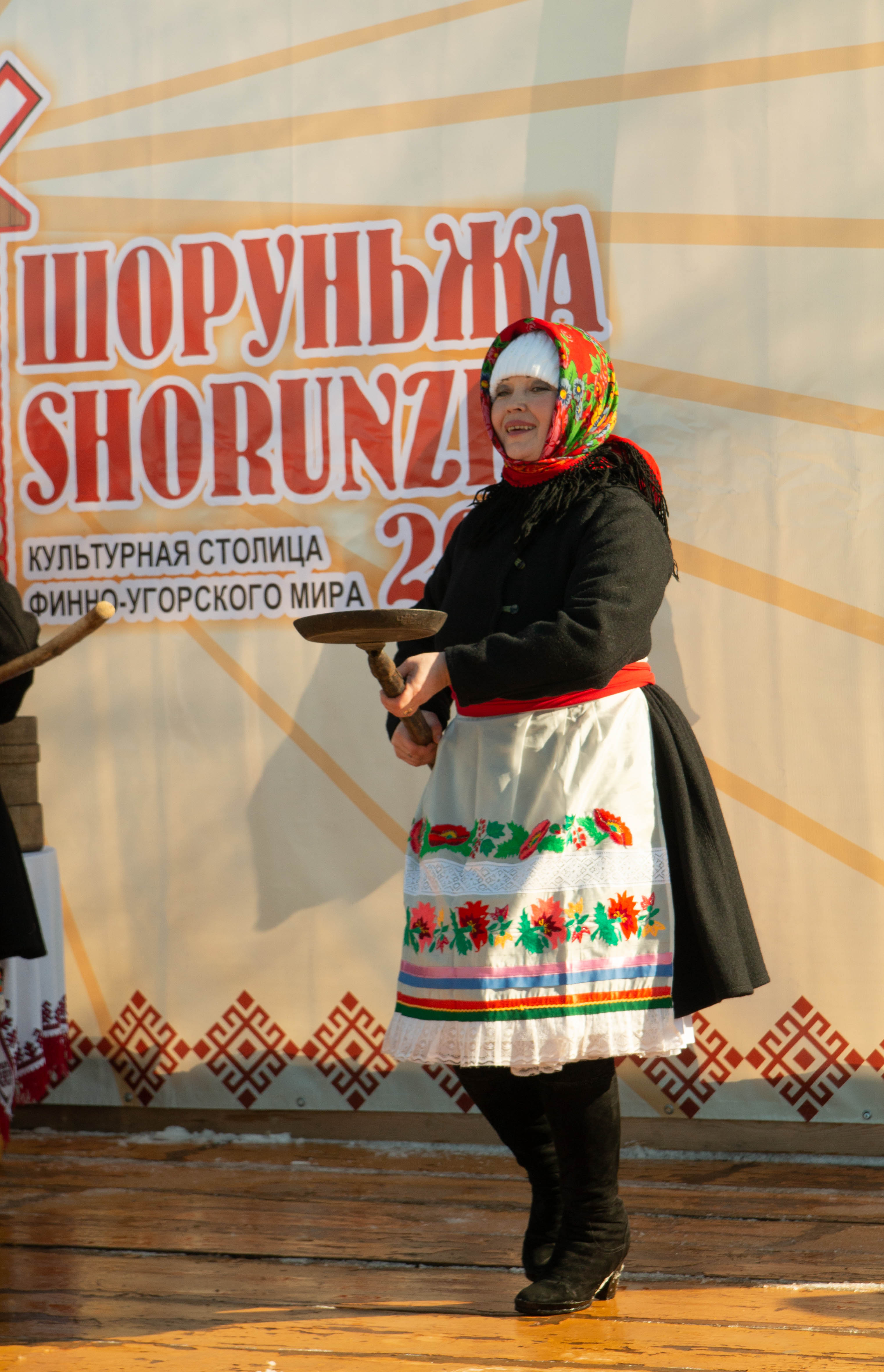 На Центральной площадке массовых гуляний с Масленицей поздравили заместитель министра культуры, печати и по делам национальностей Марий Эл Галина Ширяева, заместитель министра молодежной политики, спорта и туризма республики Станислав Игошин, глава администрации Моркинского муниципального образования Александр Голубков, глава Шоруньжинского сельского поселения Иван Евсеев. После этого начались выступления творческих коллективов Параньгинского, Мари-Турекского, Сернурского, Советского, Звениговского и Моркинского районов и впервые на праздник пожаловали гости из Коми − ансамбль «Северная птица» республиканского колледжа культуры.