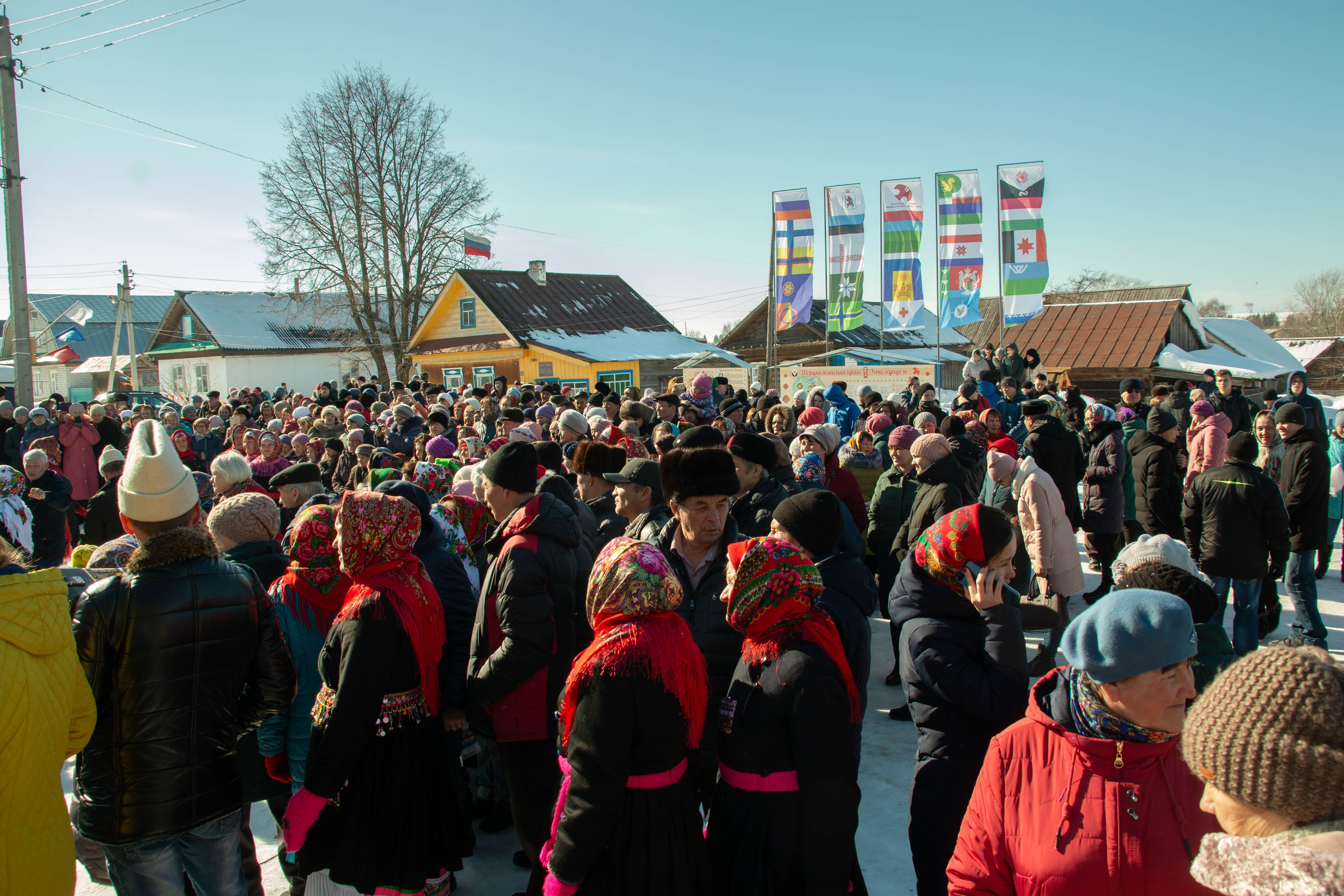 На праздник «Уярня» («Масленица») приходили не просто семьями: сюда приезжали гости из соседних районов и регионов. Всех присутствующих шоруньжинцы встречали с улыбками, по традиции − хлебом-солью, сопровождая все песнями у символического указателя финно-угорской столицы. В этот день никому не было грустно или скучно. Ласково светило солнце, словно намекая, что, вот, встреча весну проходит как полагается. Праздник продолжился с обряда «Киндым авызлымаш» («Угощение хлебом»), который провели в местном Доме культуры. Гостей напутствовал Верховный карт Марий Эл Александр Таныгин.