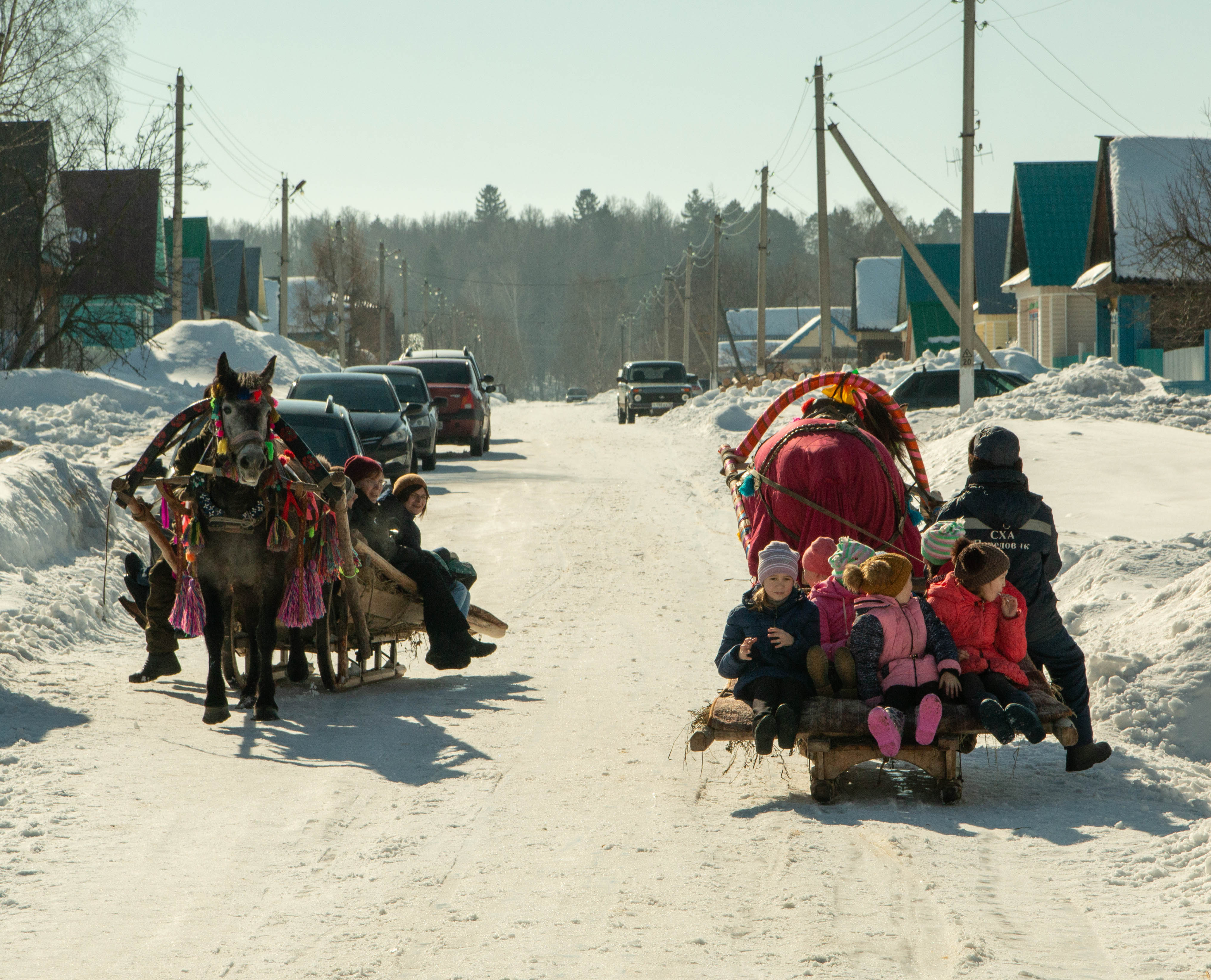Запомнились гостям праздника катание с Масленичной горки и на лошадях. Здесь было немало желающих: детки тянули ручки к животным, а взрослые, желая вспомнить свое детство, подходили к горке.