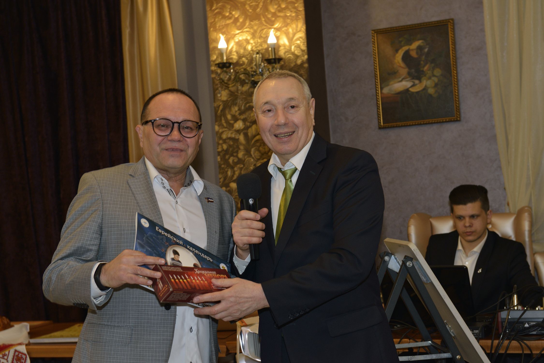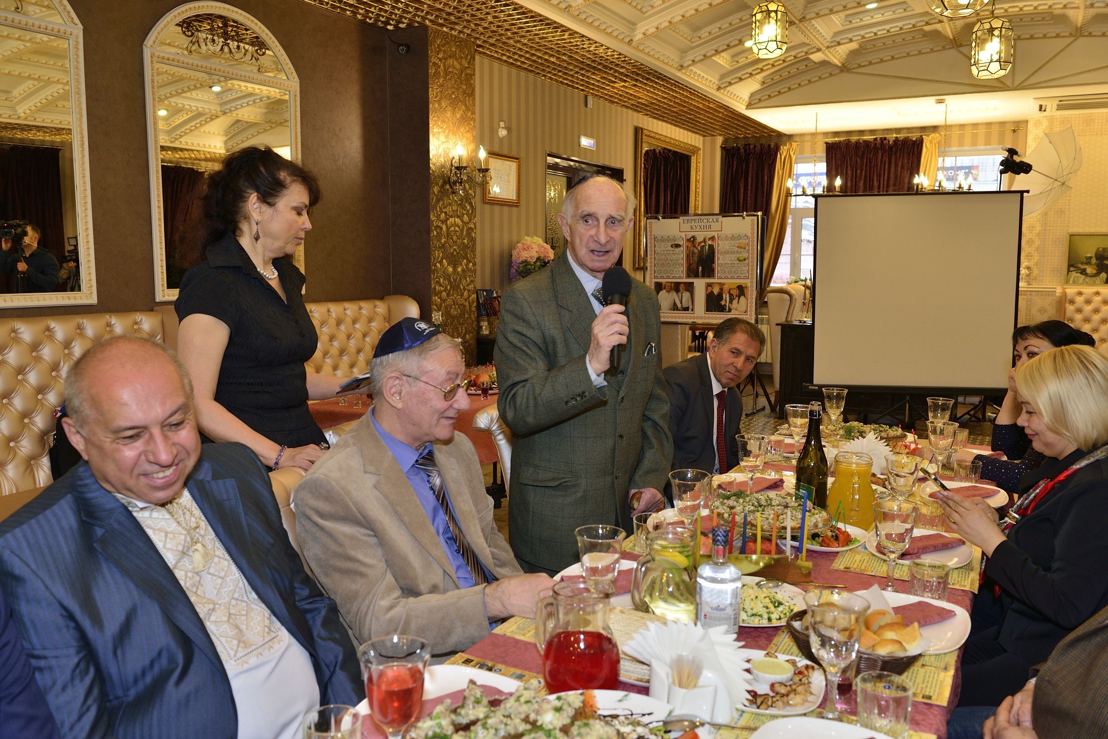 Моими соседями оказались хозяева вечера – главный организатор мероприятия, руководитель национальной еврейской культурной автономии Йошкар-Олы Валерий Басин и директор Бауманского лицея Григорий Пейсахович. Напротив располагались почетные гости – министр культуры и по делам национальностей Константин Иванов, глава Йошкар-Олы Александр Принцев, член Совета при Президенте России по межнациональным отношениям Лариса Яковлева. Соседние столы заняли представители других участвующих в этом празднике национальных диаспор, старейшины и члены еврейской общины. Всего же в зале собралось около 60 человек.