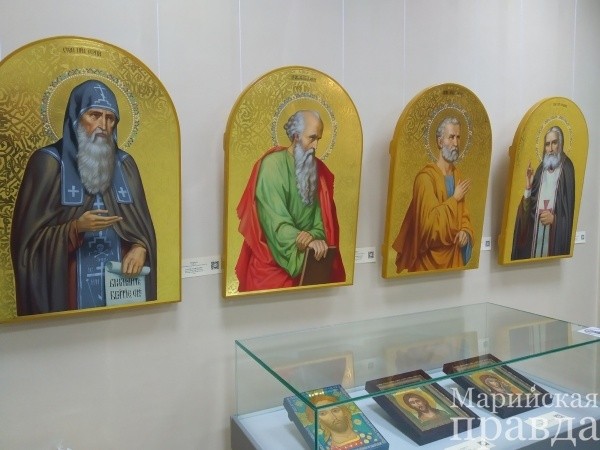 Марийские иконописцы – гордость нашего края. Несмотря на строгие рамки в православной иконописи, в каждой работе отражена индивидуальность и душа самого художника. Трудоемкость работы невероятная. Посмотрите только на техническую основу икон заслуженного художника Марий Эл Станислава Попова: дерево, левкас, цировка, золото, холодная эмаль, яичная темпера. Эта «выставка в выставке» освещает духовностью всю экспозицию, и без того наполненную любовью к родному краю.