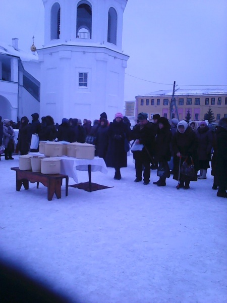Тем временем, крестный ход направился в Троицкий собор, а большая часть верующих вернулась во двор Вознесенского собора, чтобы занять очередь за святой водой.