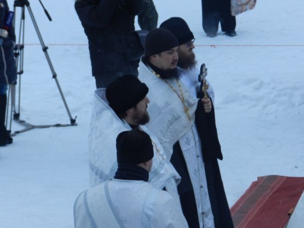 В это время на противоположном берегу продолжали свое дежурство возле купели сотрудники МЧС и полиция. Правда, желающих окунуться в прорубь, как это принято по народной традиции, были единицы, не как минувшей ночью.