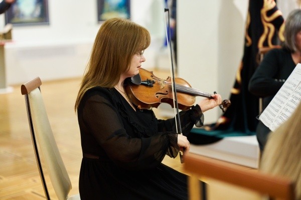 Посетители во время открытия выставки смогли услышать и струнный квартет имени А. Эшпая, чьи мелодии наполнили пространство Национальной художественной галереи особой атмосферой.