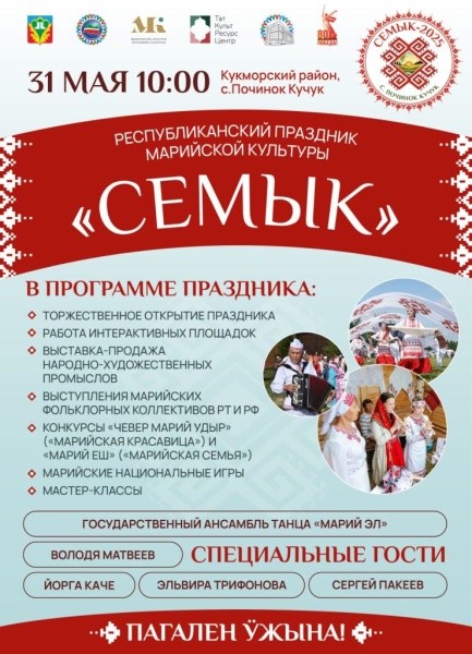31 мая в селе Починок Кучук (Кукморский район Татарстана) пройдёт праздник марийской культуры Семык, посвящённый 80-летию Победы и Году защитника Отечества.