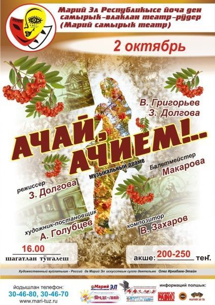 Напомним, что в этом году театр отмечает своё 25-летие. В честь этого юбилея со 2 октября стартует республиканский фестиваль. Целый месяц артисты будут гастролировать по республике и радовать жителей деревень и сел Марий Эл лучшими спектаклями, поставленными в Театре за четверть века.