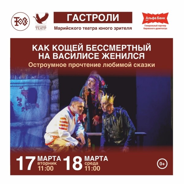 В апреле в нашу республику приедут артисты Кировского драматического театра. 14 и 15 апреля они выступят на сцене Марийского театра юного зрителя, представив публике Йошкар-Олы следующие спектакли: