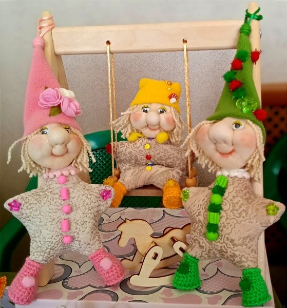 Все ее гномы и домовята улыбаются. Головы и ручки у кукол подвижны, их можно переодевать в разные одежды и устраивать банный день – стирать. Друзья и знакомые, приглашая на день рождения, оговариваются: «Только ничего не покупай, подари свое!» И Галина с радостью дарит, чаще гномов и домовят. По народным приметам первые несут в дом богатство, а вторые - счастье.