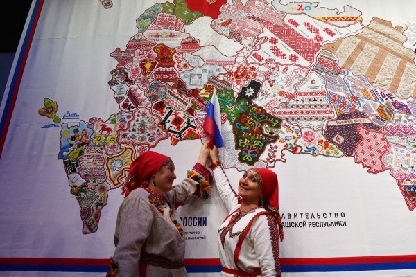 В Чебоксарах презентовали вышитую карту России, над которой трудились 200 мастеров из разных регионов, в том числе из Марий Эл.