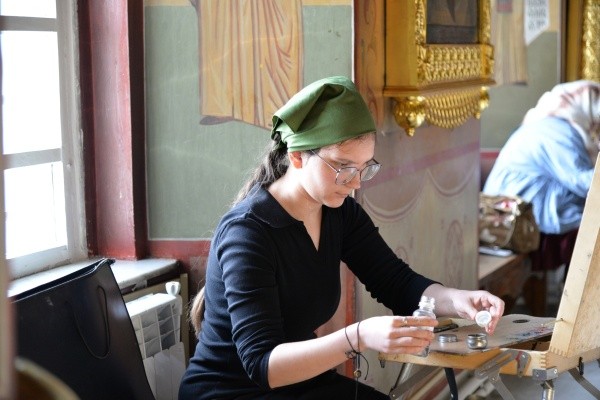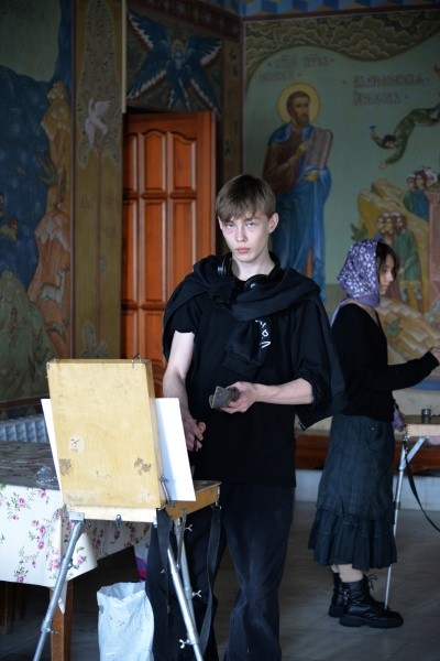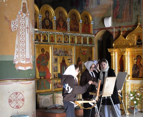 Ребята разместились со своими этюдниками в интерьерах храма. Они ловили уникальный свет, который скользил по сводам собора в попытке запечатлеть величие архитектуры.