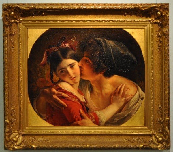 Анна Зиновьева, куратор выставки «Красный»:- С работы «Поцелуй» началась громкая слава Федора Антоновича Моллера. За это произведение он был удостоен звания академика живописи Императорской Академии художеств. Первый оригинал (его местонахождение сейчас неизвестно) приобрел император Николай I для личных покоев супруги в Зимнем дворце.Об авторе