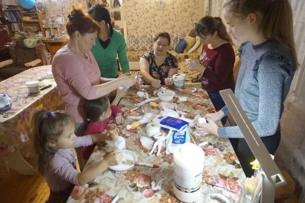 В Йошкар-Олинской и Марийской епархии РПЦ отметили, что в творческой мастерской Заставы в рамках проекта проходят мастер-классы по изготовлению ватной куклы «Зимняя сказка», а также «улиточек», «ковров-самолетов» и «котомок».