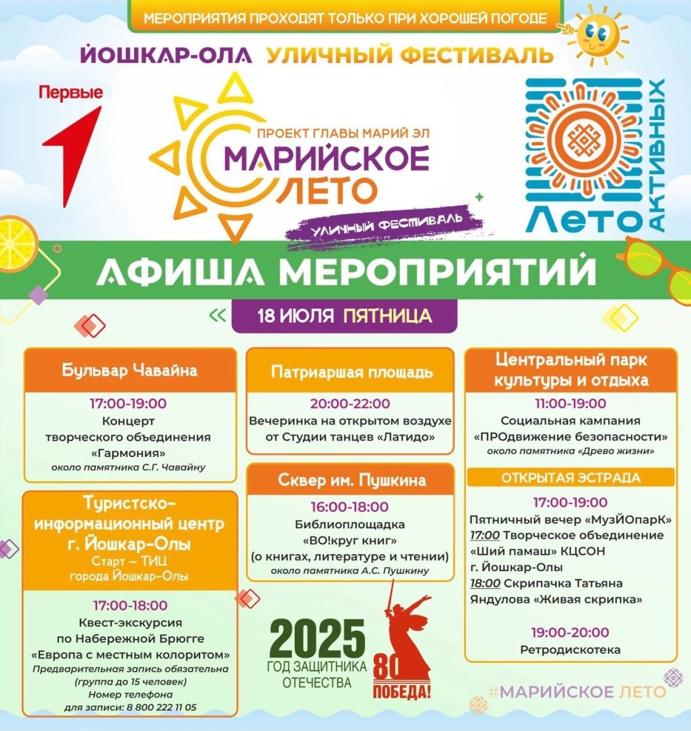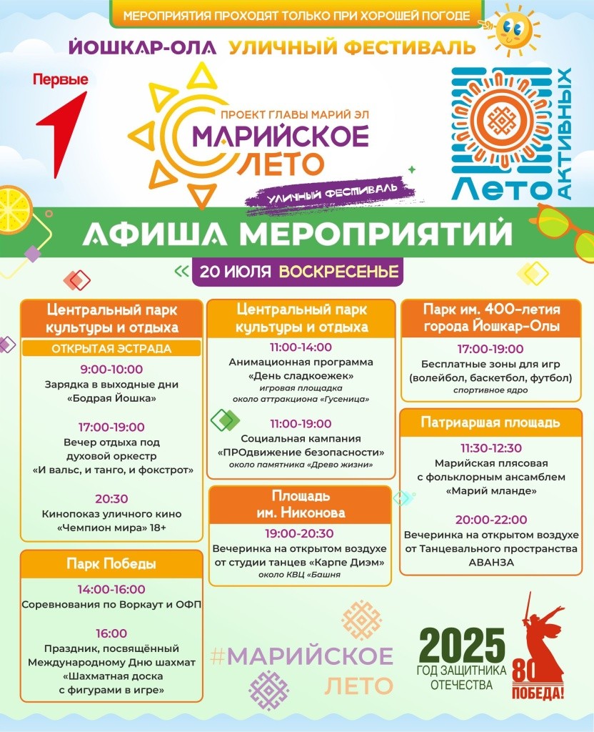 С 17 по 20 июля жителей и гостей Йошкар-Олы будут ждать спортивные, культурные и образовательные мероприятия, ставшие частью фестиваля «Марийское лето».
