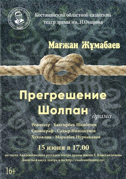 «Прегрешение Шолпан» – одно из немногих прозаических произведений известного казахского поэта Магжана Жумабаева, которое интересно современным звучанием темы. В спектакле столкнулись любовь, ревность, насилие и жестокость. Глубокое, искреннее чувство гибнет под натиском жизненных коллизий. Такое могло произойти и сто, и двести лет назад, случается это и сейчас.