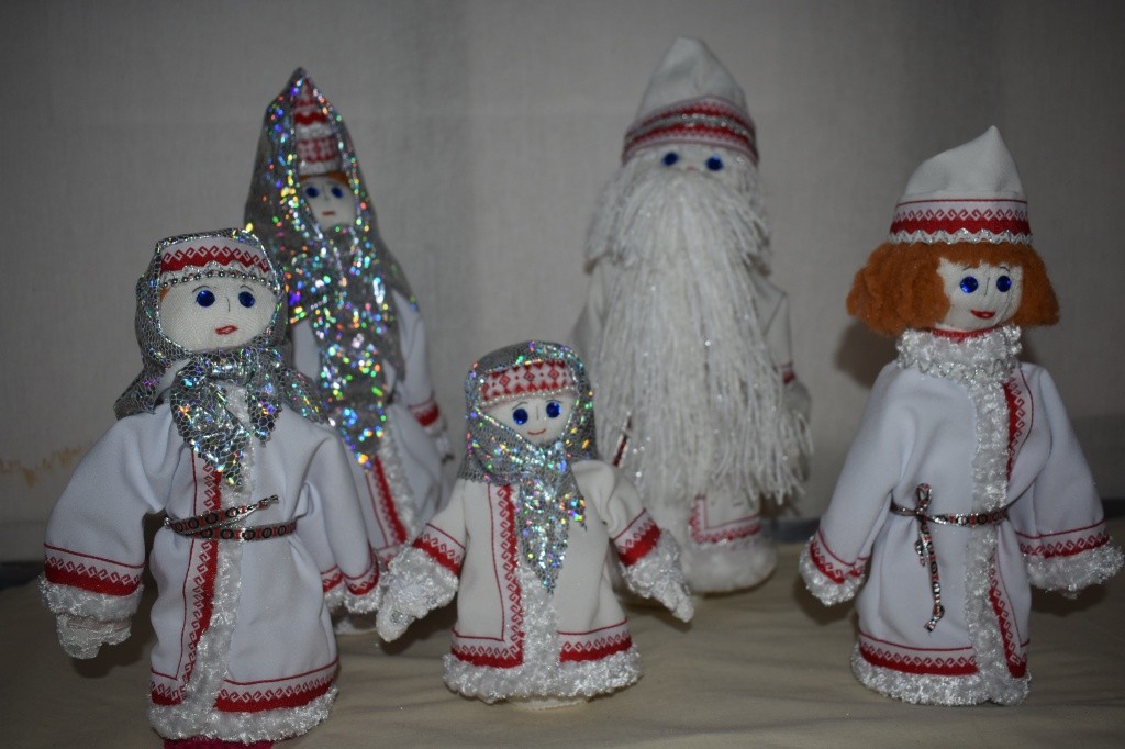 Можно увидеть на выставке в музее семью марийского Деда Мороза – Йушто Кугызы, выполненного мастерицей из Волжска Тамарой Тарасовой.