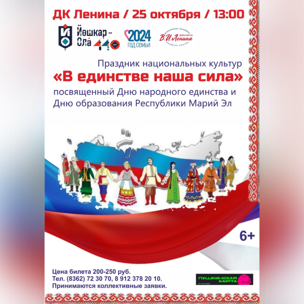 25 октября в 13:00 в Дворце культуры имени В.И. Ленина начнется праздник национальных культур «В единстве наша сила», посвящённый Дню народного единства и Дню образования Республики Марий Эл.
