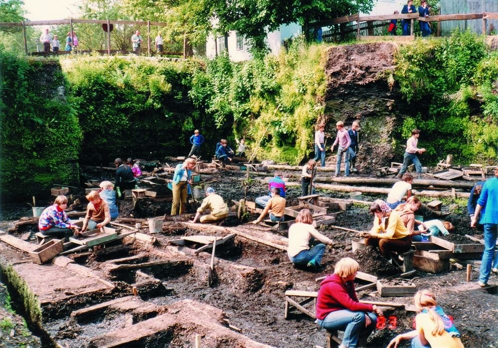 Студенты исторических факультетов на раскопе в Новгороде.