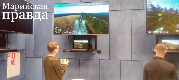 И внутри Музейно-патриотического центра гостей ждало множество сюрпризов. Марийский технологический колледж предоставил возможность всем желающим почувствовать себя оператором БПЛА. Дроны, правда, были виртуальными и выполняли исключительно гражданские задачи - опыление полей и поиск объектов.