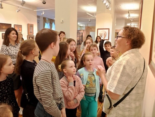 Изюминкой музейной программы стал детский квест по выставке «Единение. Суриковцы». Познавательная экскурсия прошла в игровой форме: ребята отвечали на вопросы своего «гида», рассуждали о природе вдохновения, с удовольствием включались в беседу о художниках, их судьбах и творчестве.