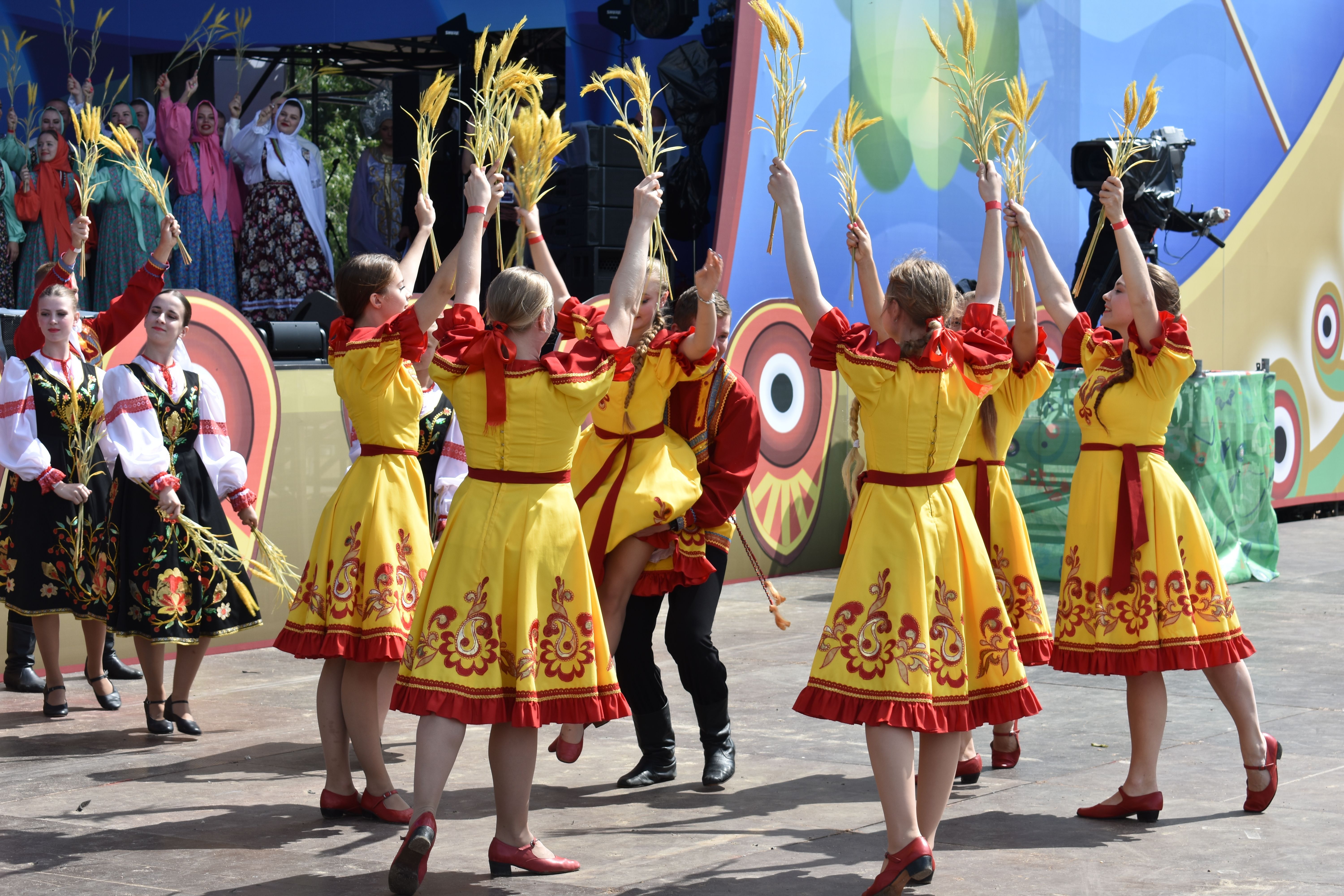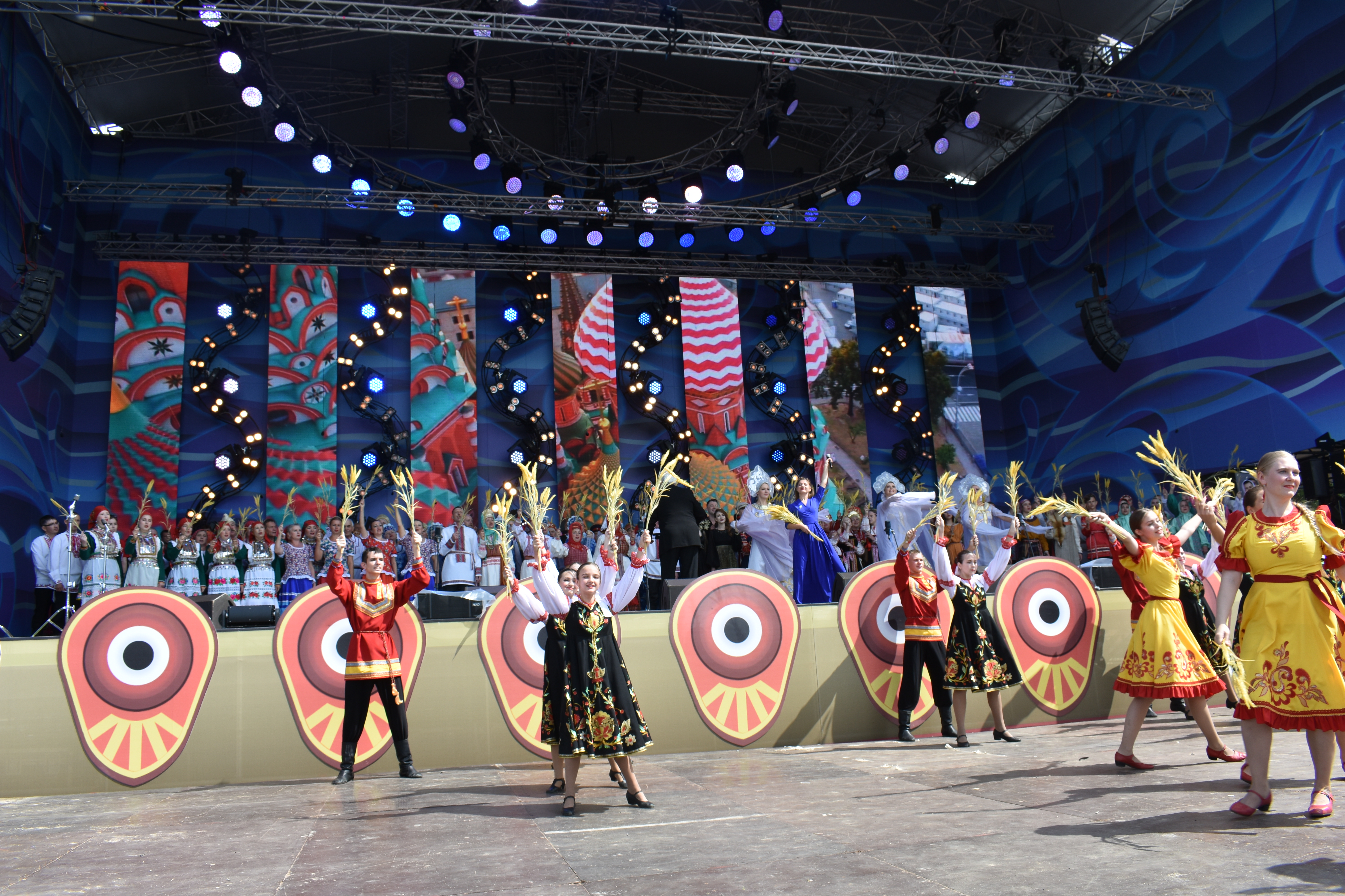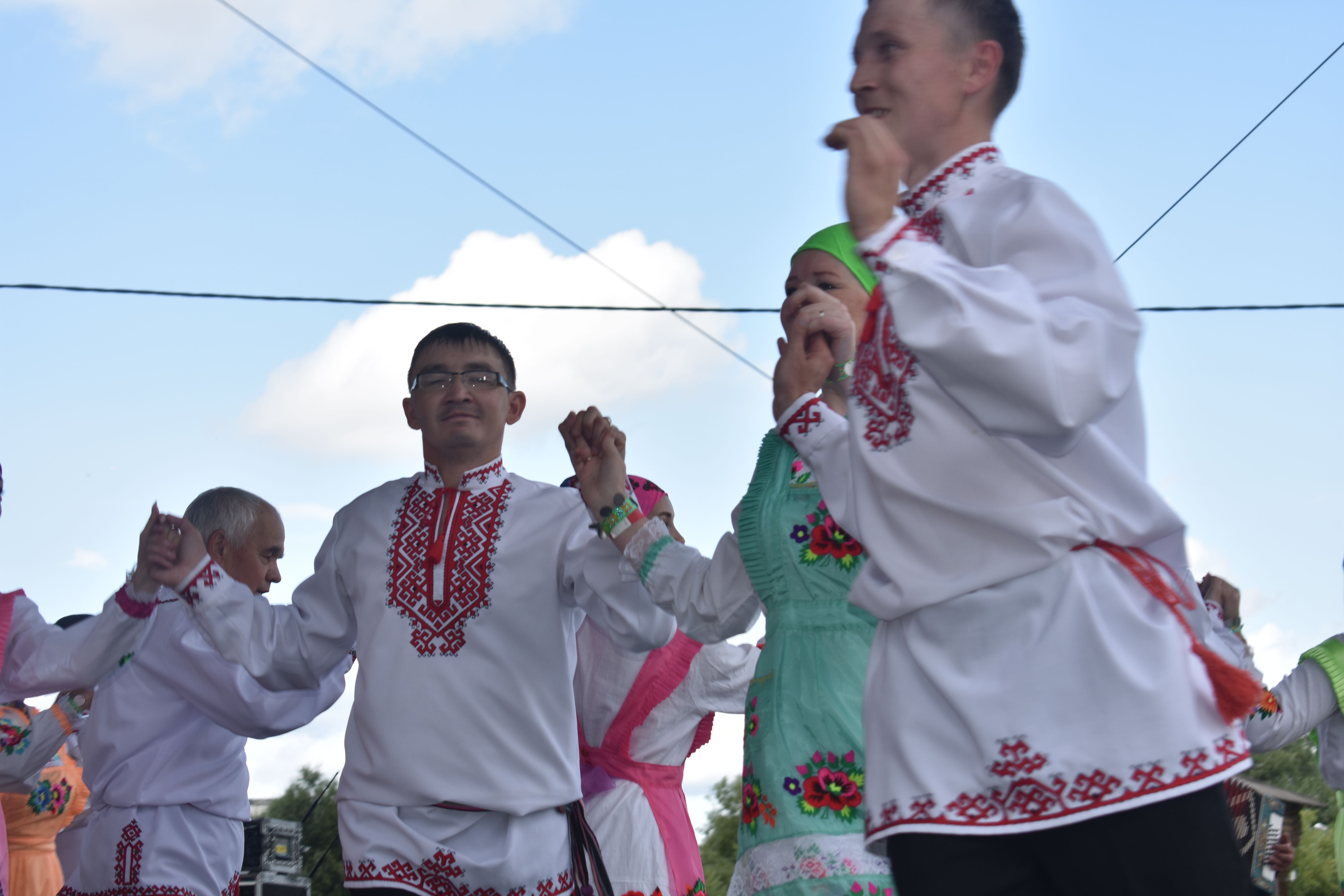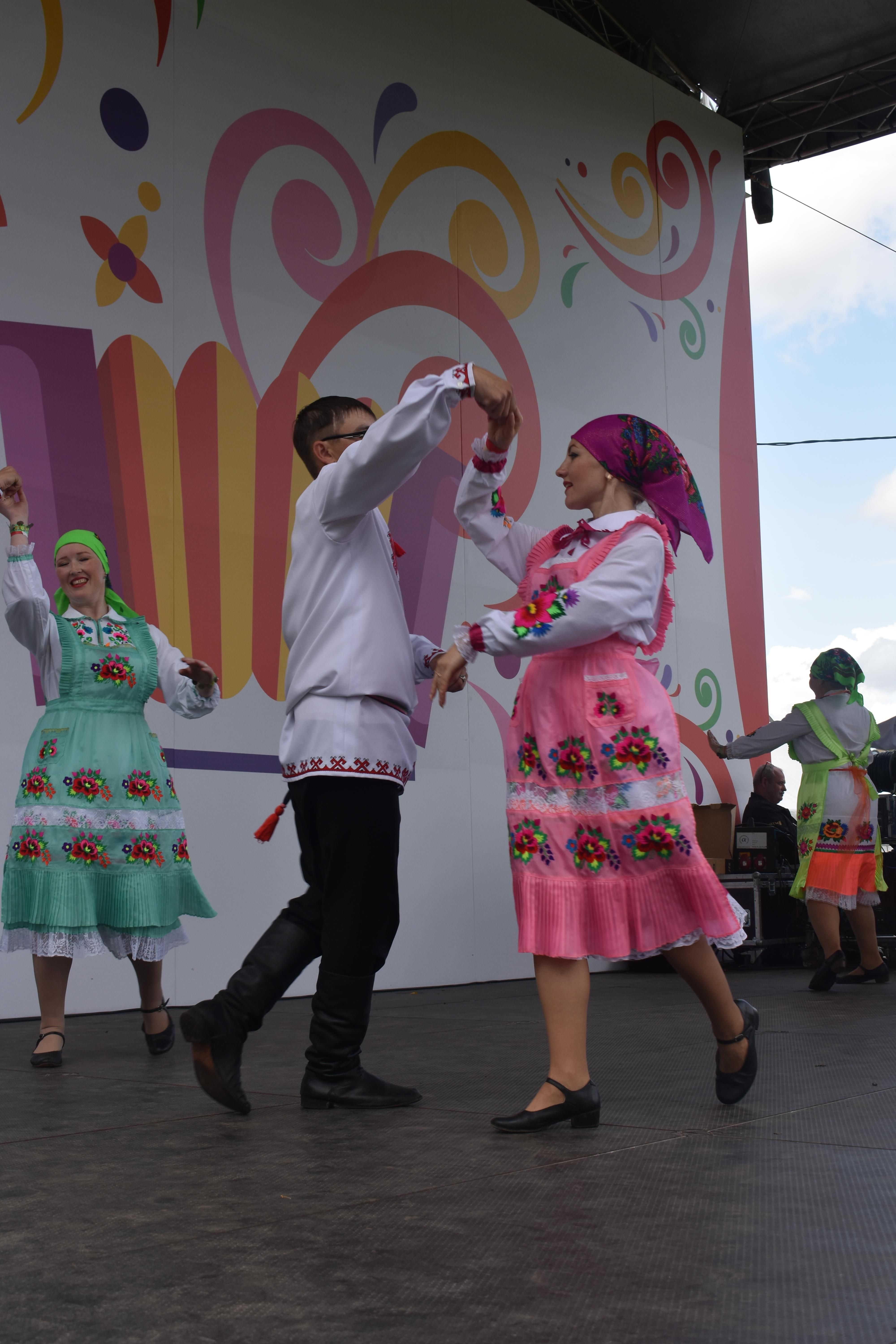 Фольклорный коллектив из Марий Эл надолго запомнится гостям «Русского поля» хотя бы тем, что его участники прошли по набережной в своих ярких национальных костюмах, танцуя и громко напевая песни на марийском языке. Они сделали это единственными! Прохожие улыбались и снимали их на видео, перешептывались, узнавая друг у друга, откуда приехали артисты, провожали овациями и шли вслед за исполнителями.