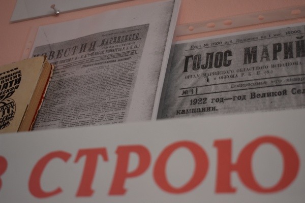 − Работая в библиотеке, хорошо знаешь такие данные, − говорит она. − Первая газета вышла 28 августа 1921 года в воскресный день и называлась «Известия», был «Голос мари», а между ними в 1924 году выходит «Бюллетень газета». Затем – «Марийская деревня», которая в с 1931 году становится «Марийской правдой». Детали выставки отбирались таким образом, чтобы показать, как с переименованием газет менялось и содержание. Редкие номера «Марийской правды» сейчас можно посмотреть в электронном оцифрованном виде. В Марийском научно-исследовательском институте им.В.М.Васильева есть «Известия Козьмодемьянска», редактор которого помогал при создании выпуска первого номера наших «Известий».
