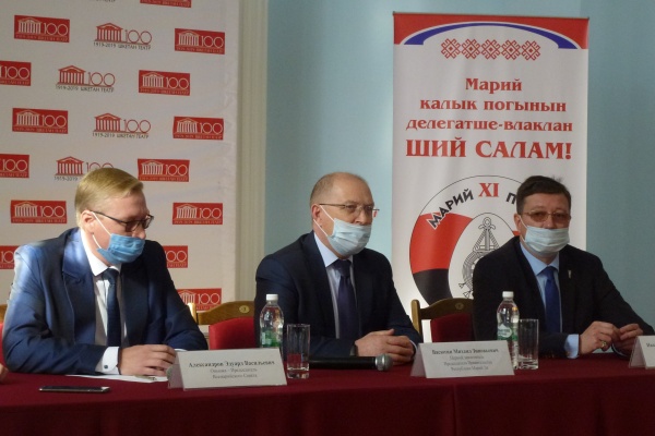 Пресс-конференция прошла в Марийском национальном театре драмы имени М. Шкетана. В ней приняли участие первый заместитель Председателя Правительства республики Михаил Васютин, председатель Всемарийского совета Эдуард Александров и министр культуры, печати по делам национальностей Марий Эл Константин Иванов.