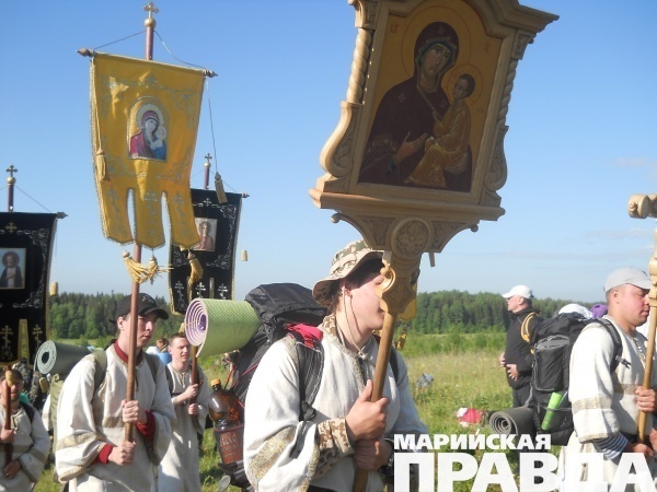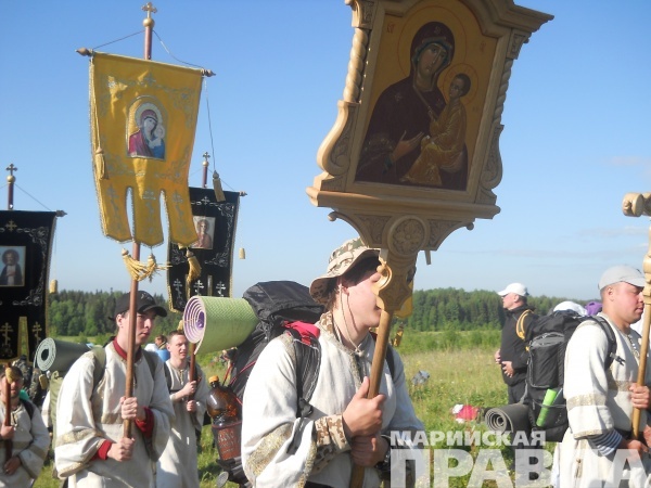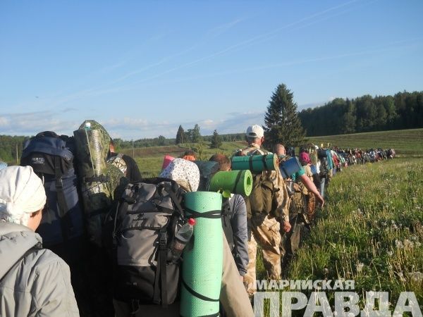 Не скрою, когда рюкзак был полностью собран, в душе поселилось зерно сомнения: «И как я пойду, если мне по квартире тяжело его таскать? Может…?». Но тут же старалась отмести эти искусительные мысли. Правда утром, уходя из дома и закрывая дверь, эта крамольная мысль еще раз промелькнула в голове: «И куда тебя несет? Итак отпуск короткий, лучше бы дома сидела». А в душе на мгновение поселился страх: дойду ли? Прогнала его, сказав себе: «Старики и дети ходят. Неужели не дойду? С молитвой-то точно получится!». Здесь нужно сказать, что изначально, полагая, что я новичок, рассчитывала пройти на первый раз только часть пути – до Великорецкого, а оттуда уехать в Киров на автобусе. Это три дня и около 100 километров пути (первая дорога длиннее обратной). Хотя с берега Великой икону также пешком несут обратно в Киров.